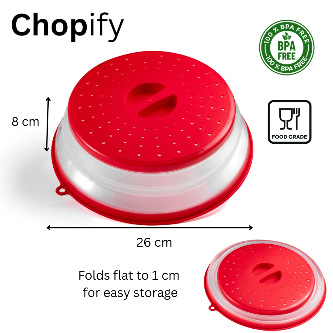 Once collapsed, the Chopify Microwave Splatter Cover folds down to just 1 inch in height, making it incredibly easy to store in drawers, cabinets, or even hang on a hook. Ideal for small kitchens or minimal setups.