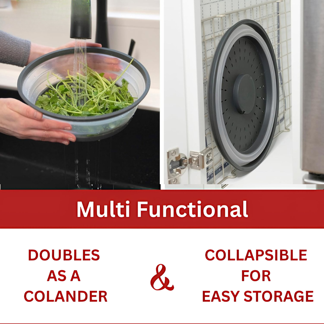 More than just a splatter guard — this smart kitchen essential also doubles as a colander and steamer lid. Rinse veggies, cover dishes, or trap steam while cooking — all with one foldable, space-saving design.